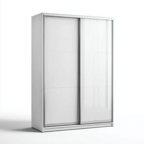 Armadio ad ante scorrevoli in acciaio legato e vetro temperato bianco 150x60x200 cm